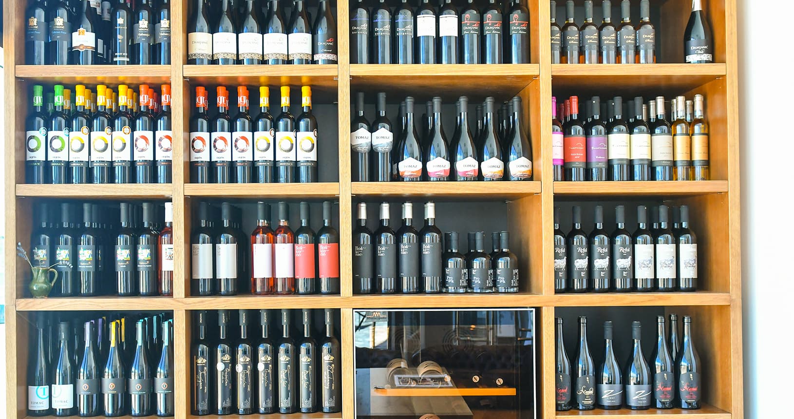 Posjetitelji u prostoru wine room-a mogu isprobati kolekciju najboljih hrvatskih i lokalnih vina, pa tako na brojnim policama možete pronaći vina vinarija Matočec, Zdjelarević, Boškinac, Agris, Coronica, Tomaž, Damjanić, Krauthaker, Tomac, Radovan, Benevuti i drugih.